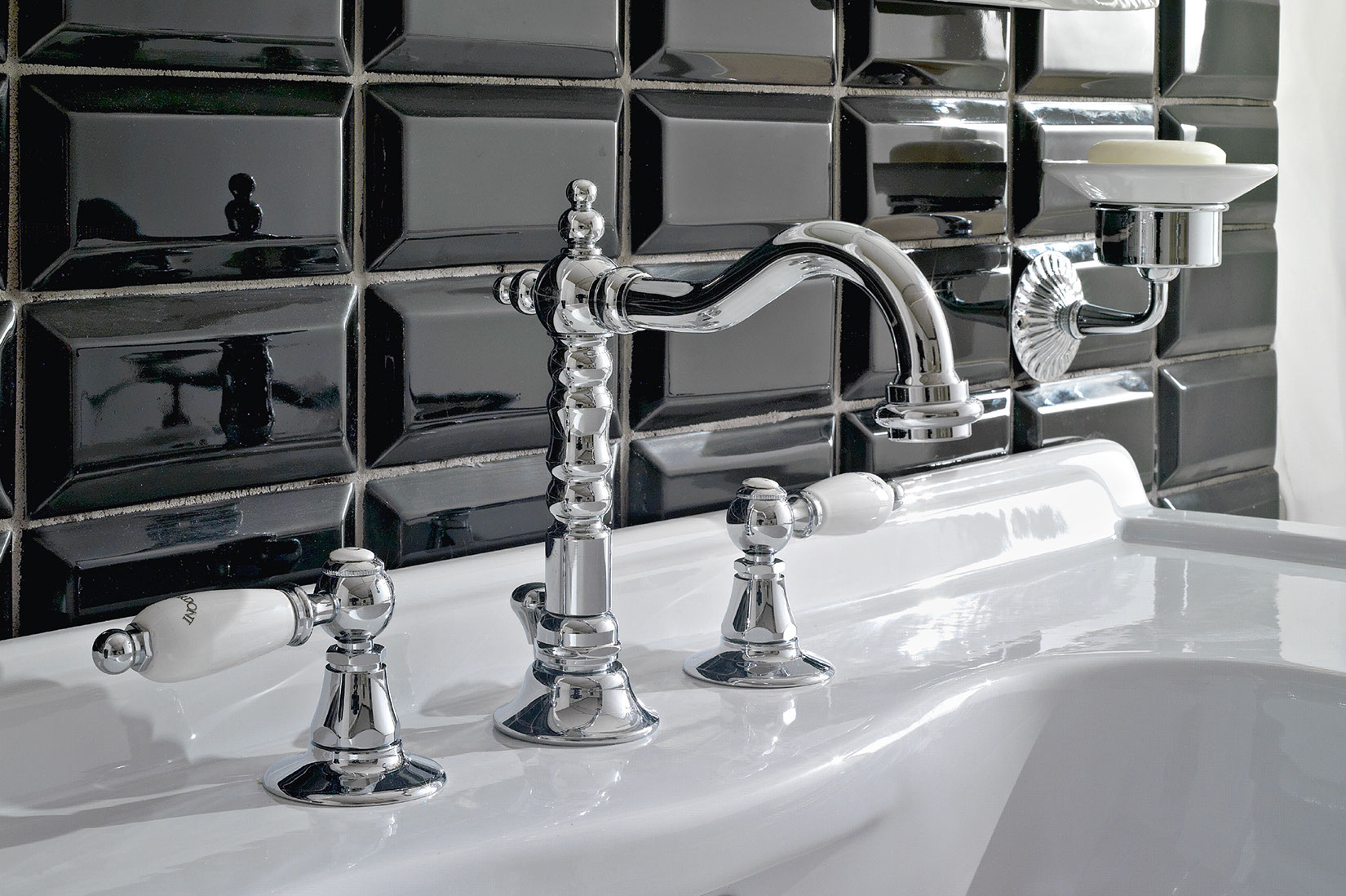 The Livia range is distinguished by the lever handle features. In metal, white or black ceramic, the series offers a wide range of figures and combinations to create unique designs. Being the absolute protagonist, the metal combines with customised Sbordoni details in the white and black ceramic variants.