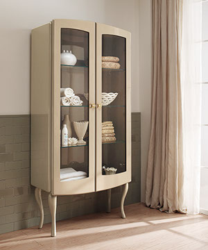 The two new Palladio vanity units and the three new cabinets draw inspiration from the sinuous and smooth forms of the double console basin Palladio. Like wise for the other three version, also these are available in six different glossy finishes that can be combined. The wide range of jewel-like handles enables you to further personalize your vanity unit.